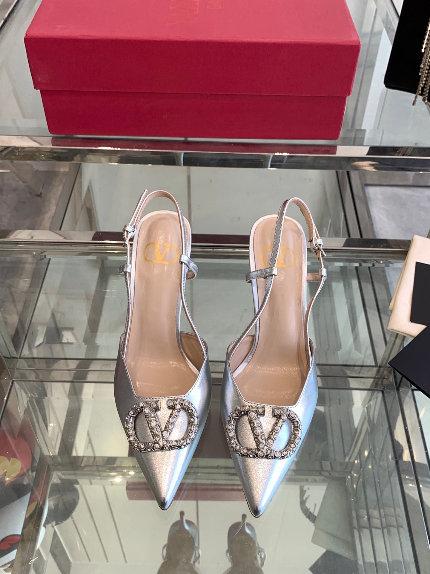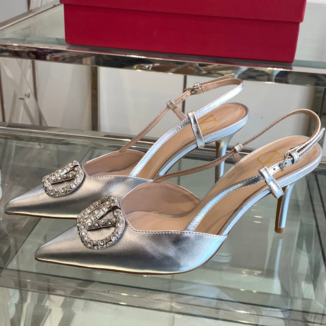 VT 25 High Heels Slingbacks Silver Cowhide 292337