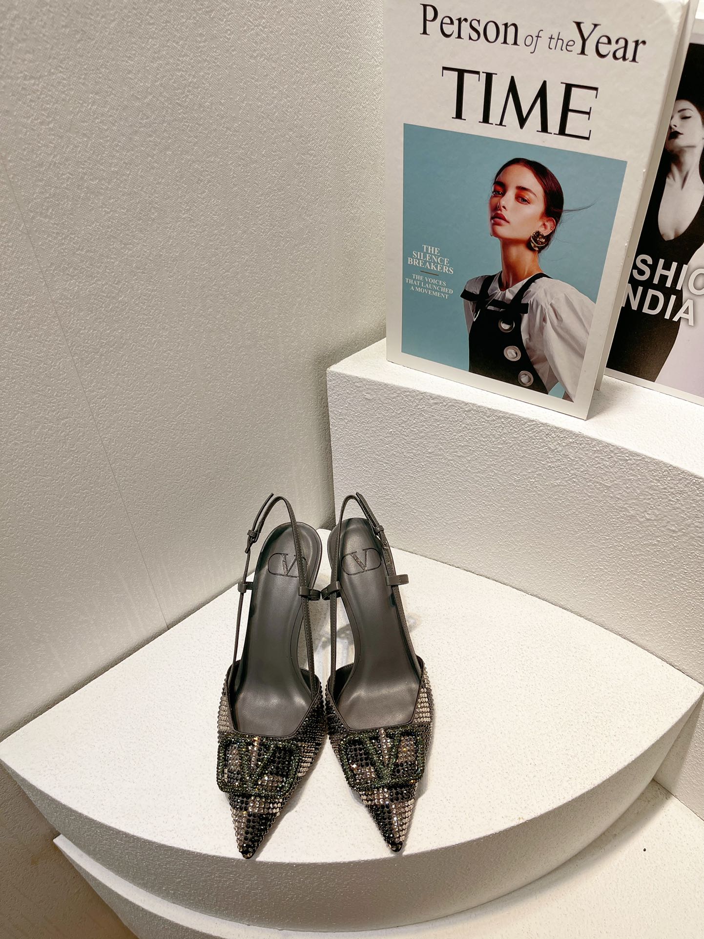 VT High Heeled Slingbacks Charcoal black Sheepskin 292824