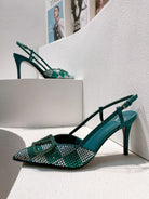 VT High Heeled Slingbacks Emerald Green Sheepskin 292829