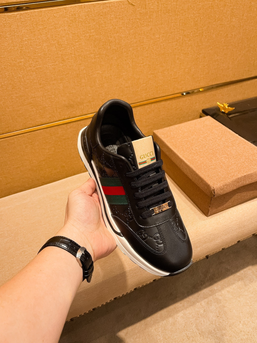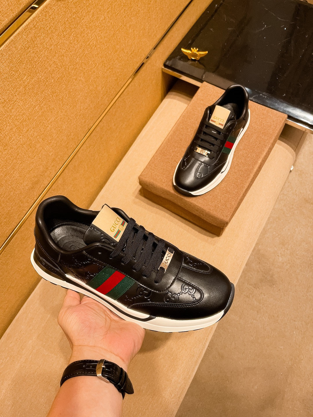 GG Men's ACE Sneaker Black Cowhide 108038