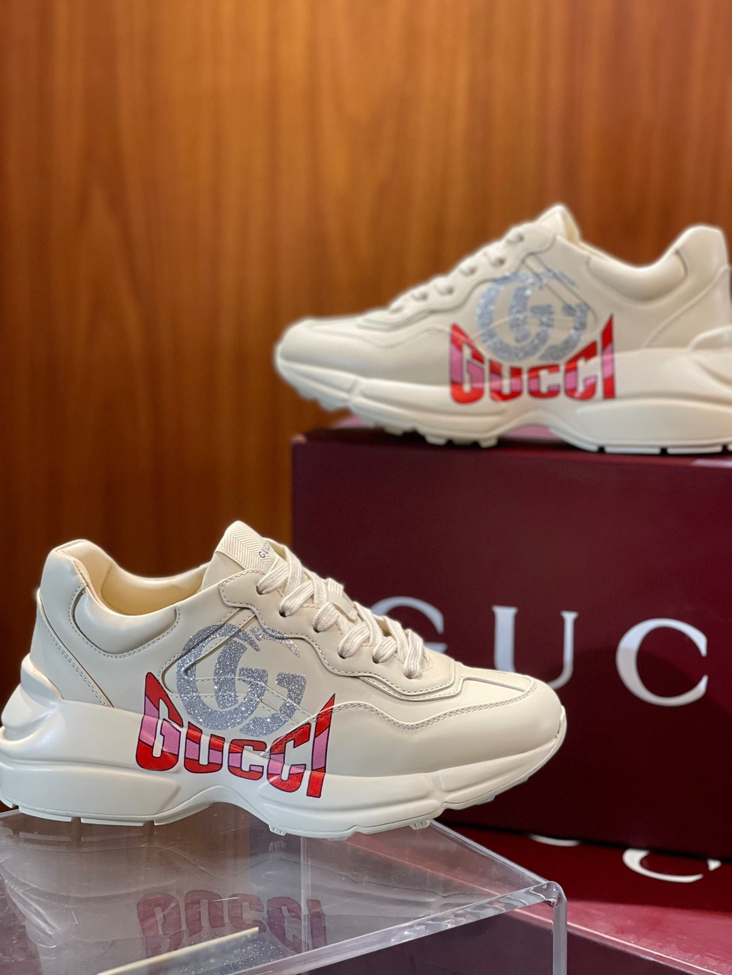 GG Men's Rhyton Sneaker Milk White Calfskin 524482