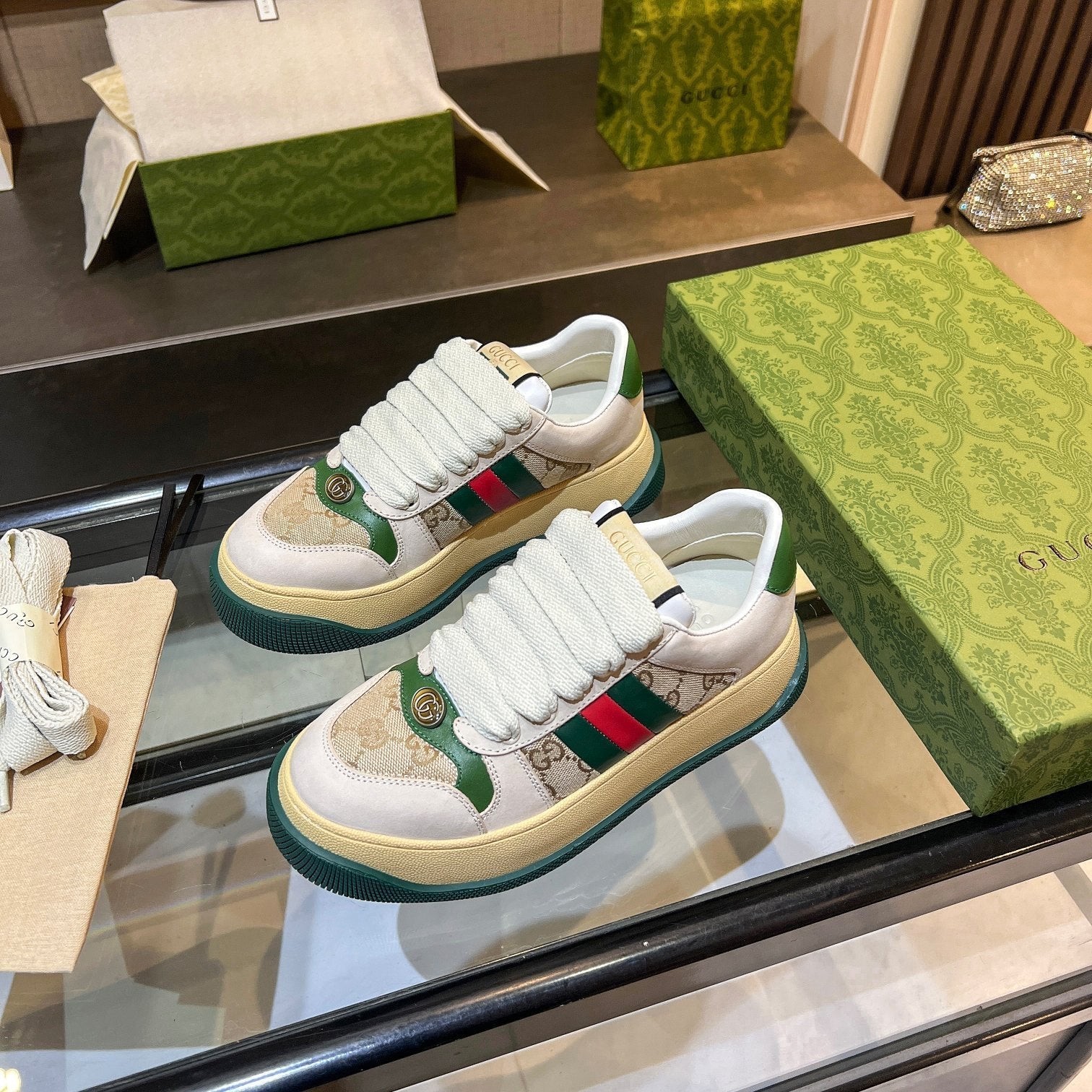 GG Men's Screener Sneaker Brown Green Canvas Sheepskin 523604