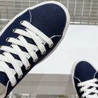 JANE SNEAKERS LOW LACE-UP WITH TRIOMPHE PATCH IN CANVAS AND CALFSKIN NAVY/WHITE LOGO