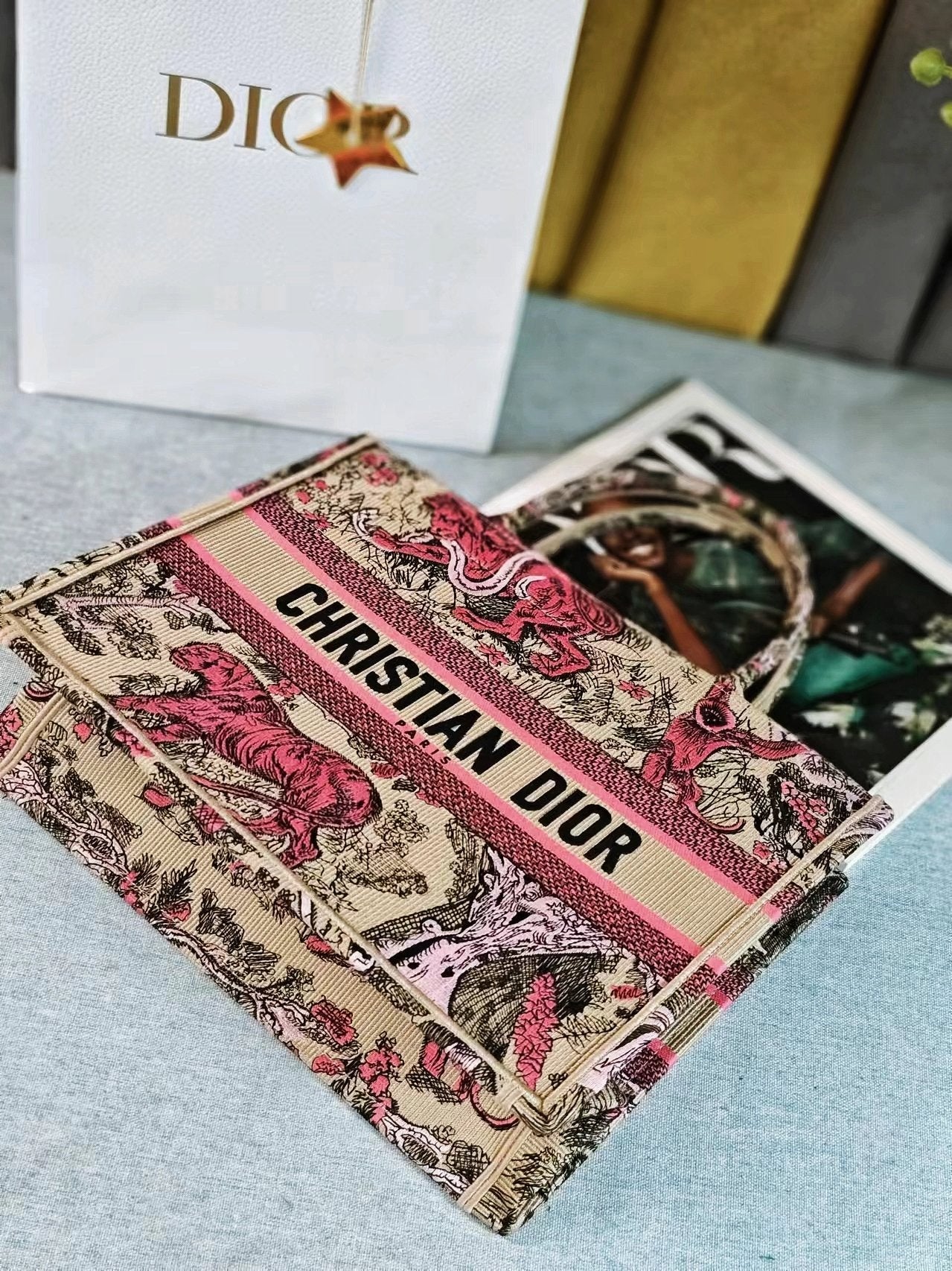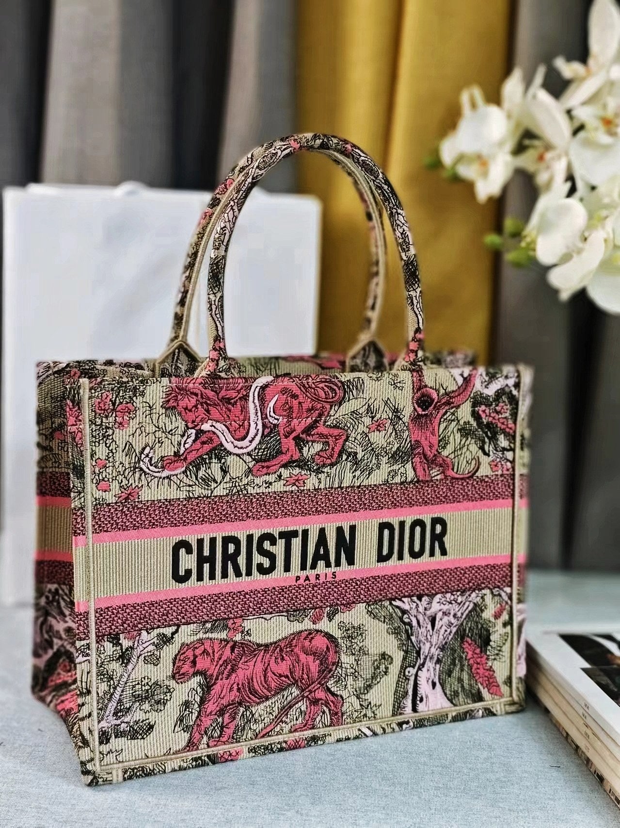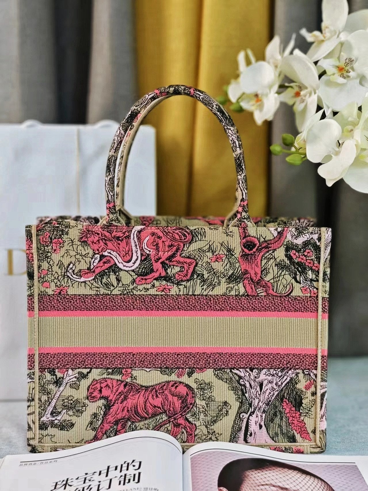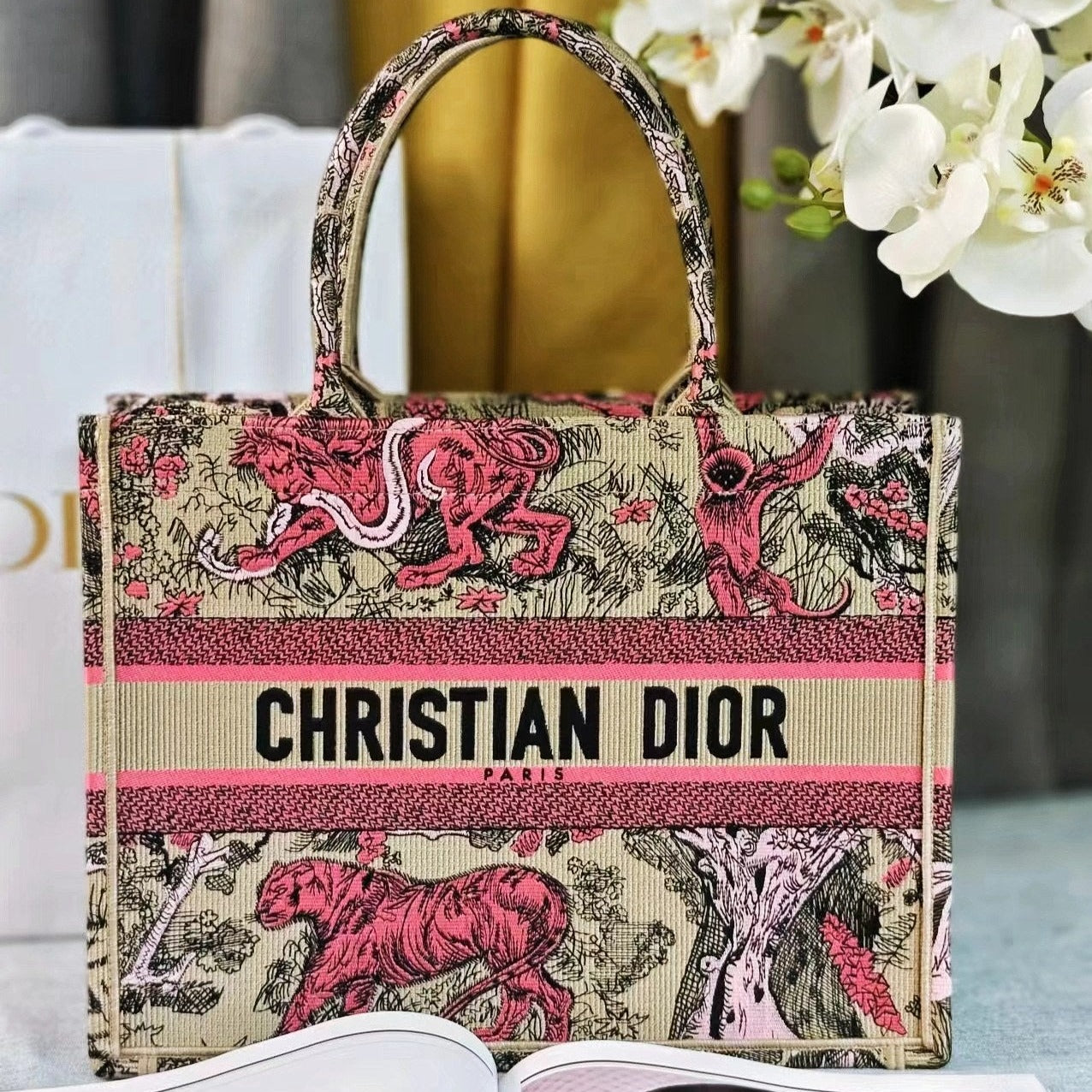 medium dioriviera 36 pink beige tiger embroidery canvas