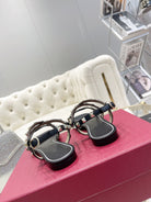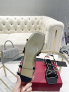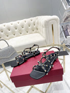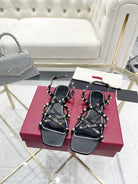 Rockstud 1cm Square Toe Black Leather Sandals