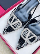Vlogo Signature Slingback Black Calfskin With Crystals Caro