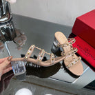 VT 25 Rockstud Sandals 65mm Beige PVC Sheepskin
