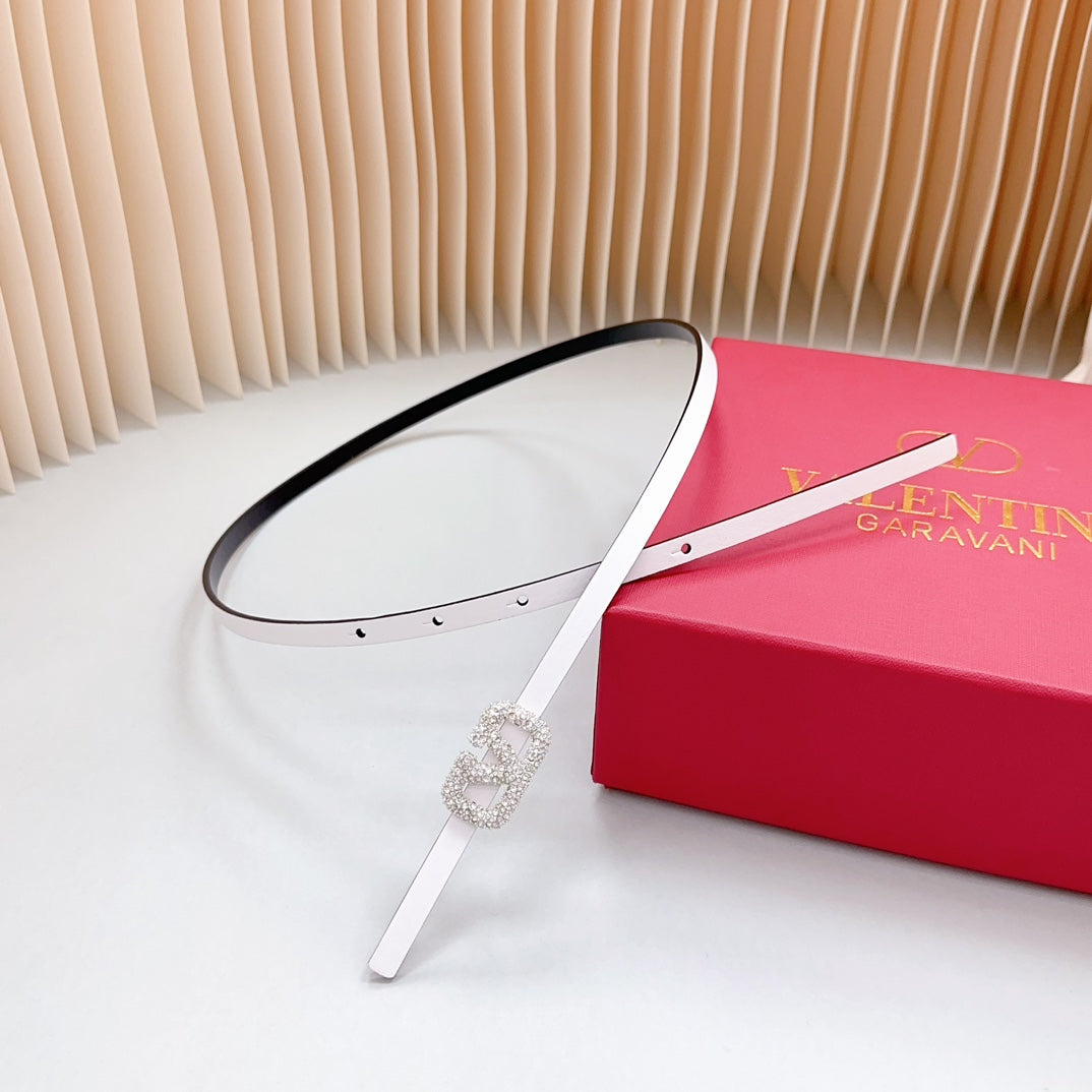 VL Belt 8mm Buckle Silver Diamond Leather White Black