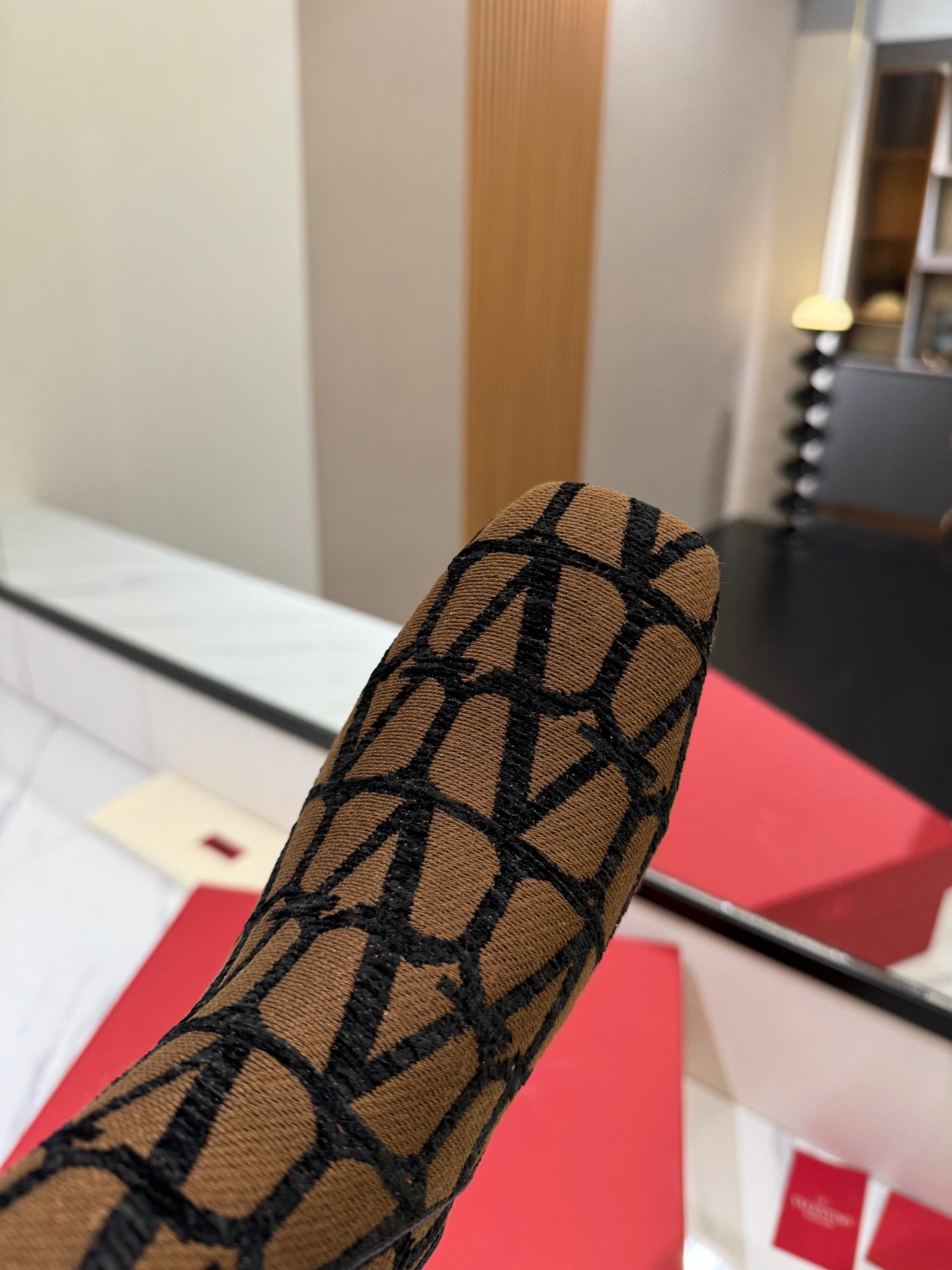 Valentino Garavani VLogo Tall Monogram High Boots 30mm In Beige Mix Black Canvas Fabric 992785