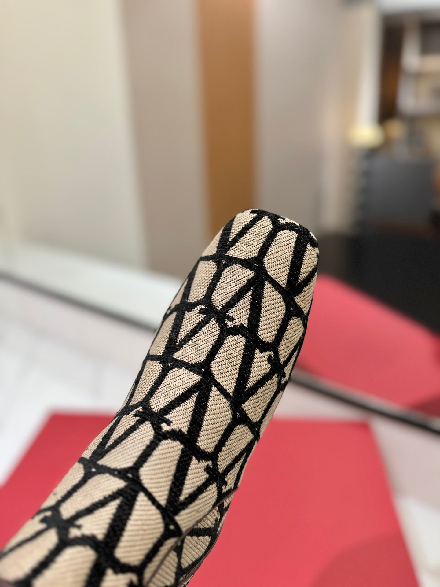 Valentino Garavani VLogo Tall Monogram High Boots 30mm In Beige Mix Red Canvas Fabric 992789