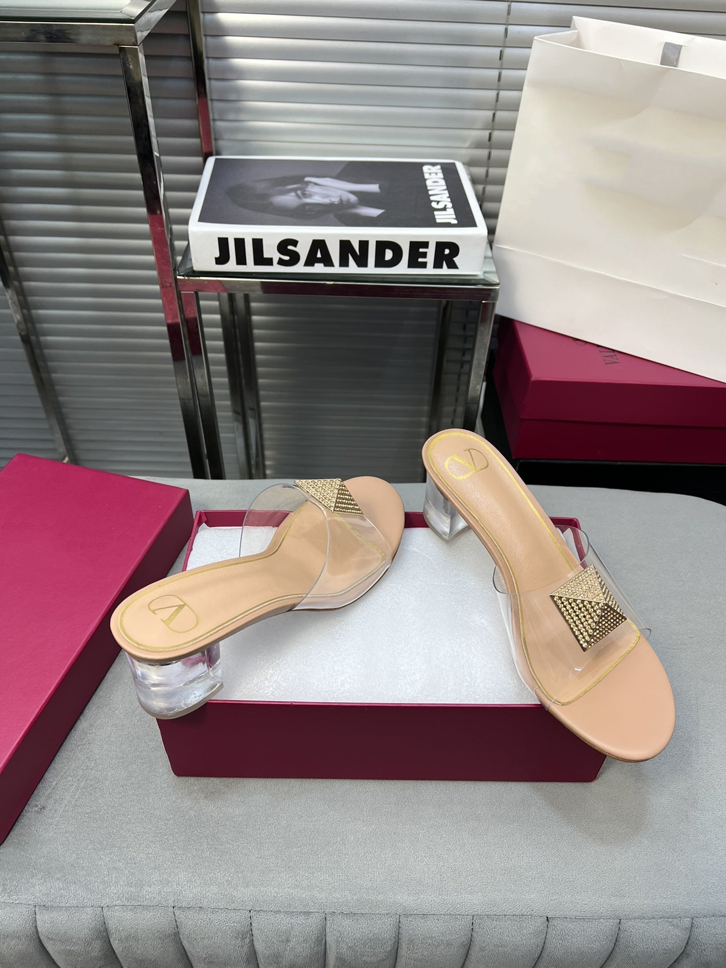 Heeled Sandals 6cm with Crystal Square Buckle Beige