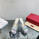 HIGH HEEL SANDAL 14CM IN SILVER CALFSKIN AND TRANSPARENT PVC