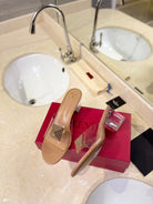 HIGH MULE 60MM IN CAMEL BEIGE SHEEPSKIN AND TRANSPARENT PVC