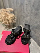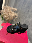 ROCKSTUD LAMINATED NAPPA WEDGE SANDAL 100 MM BLACK