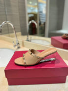 ROCKSTUD MULE SANDALS WITH TRANSPARENT HEEL IN SAND BROWN CALFSKIN