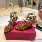 ROCKSTUD SANDAL WITH STRAP IN BRONZE BROWN CALFSKIN 60 MM