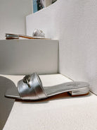 VT Moon Slides in Leather Silver Cowhide 292863