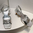 VT Sandals Heels 50mm Silver Cowhide 292775