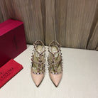 Valentino Rockstud Caged Pumps 100mm Nude Patent Leather 239636
