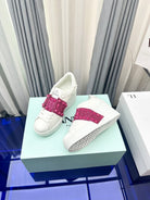FLATFORM ROCKSTUD UNTITLED SNEAKER IN WHITE MIX MAGENTA PURPLE CALFSKIN WITH RHINSTONES