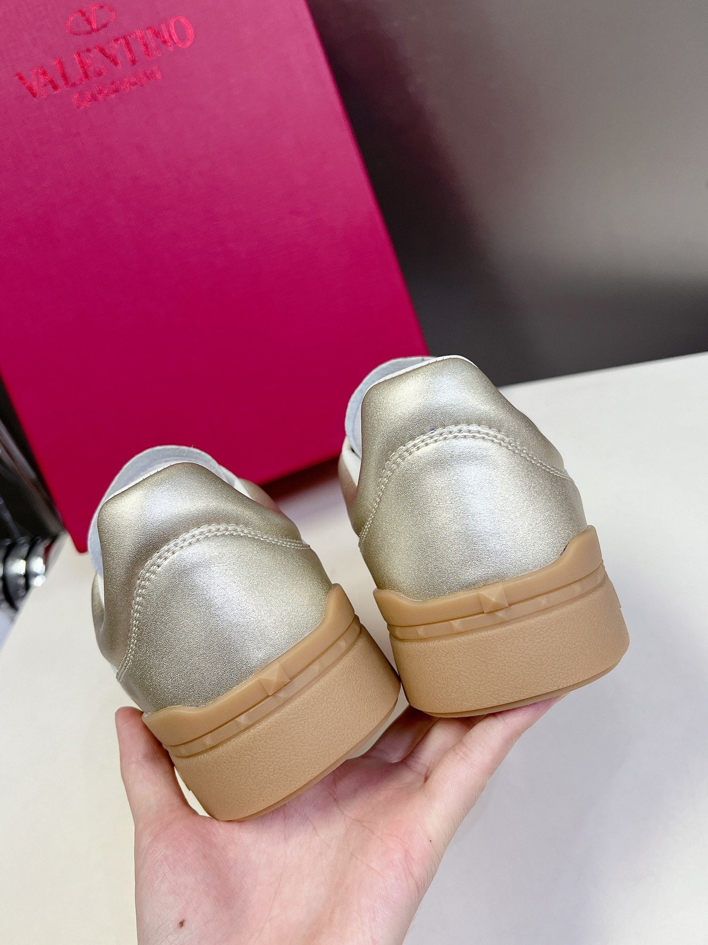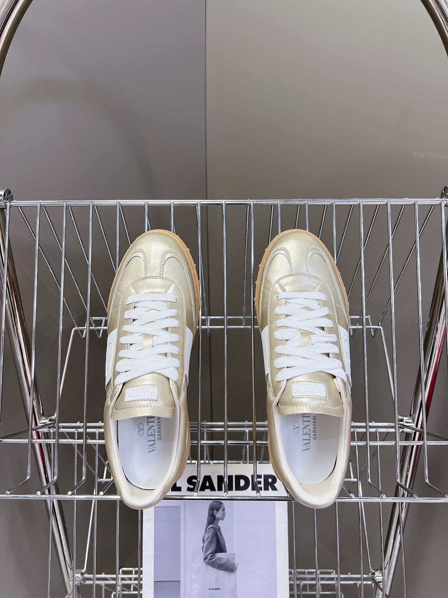 Upvillage Trainer In Platinum Gold Mix White Laminated Calfskin 989600