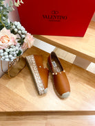Valentino Rockstud Embellished Slip On Espadrille BRown Cowhide 240573
