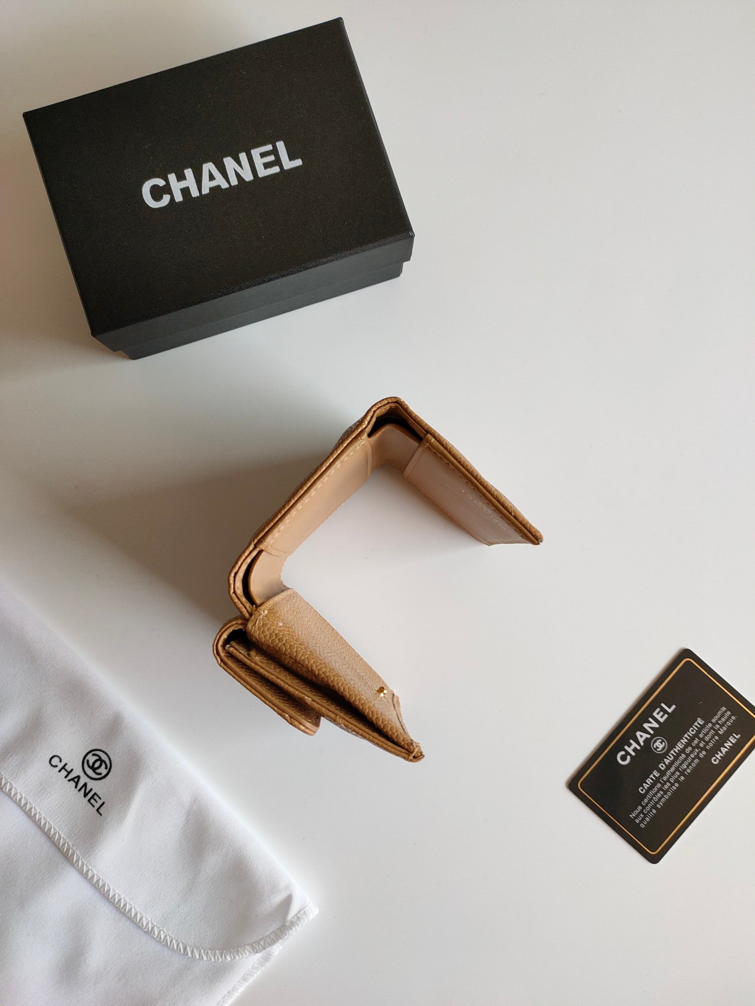 CC TRIFOLD PURSE 12 AMBER GRAINED CALFSKIN GOLD ICON