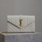 ENVELOPE CHAIN BAG 22 IN WHITE LAMBSKIN GOLD HARDWARE