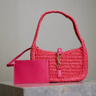 LE 5 À 7 BAG 19 IN MAGENTA PINK WOVEN RAFFIA