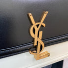 SOLFERINO SMALL SATCHEL 19 IN BLACK MIX WHITE CALFSKIN GOLD LOGO