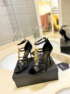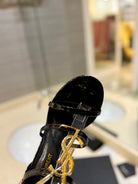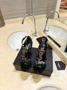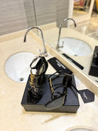 SL CASSANDRA HEELED SANDALS BLACK-GOLD CALFSKIN