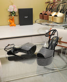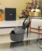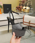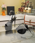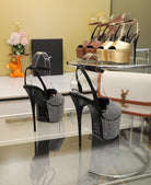 SL SUPER HIGH HEELS SANDAL BLACK SATIN-WHITE CRYSTAL