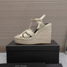 SL TRIBUTE WEDGE SANDALS METALLIC BEIGE CALFSKIN