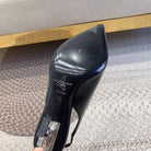 OPYUM SILVER HEEL SLINGBACK PUMPS IN BLACK GLOSSY CALFSKIN
