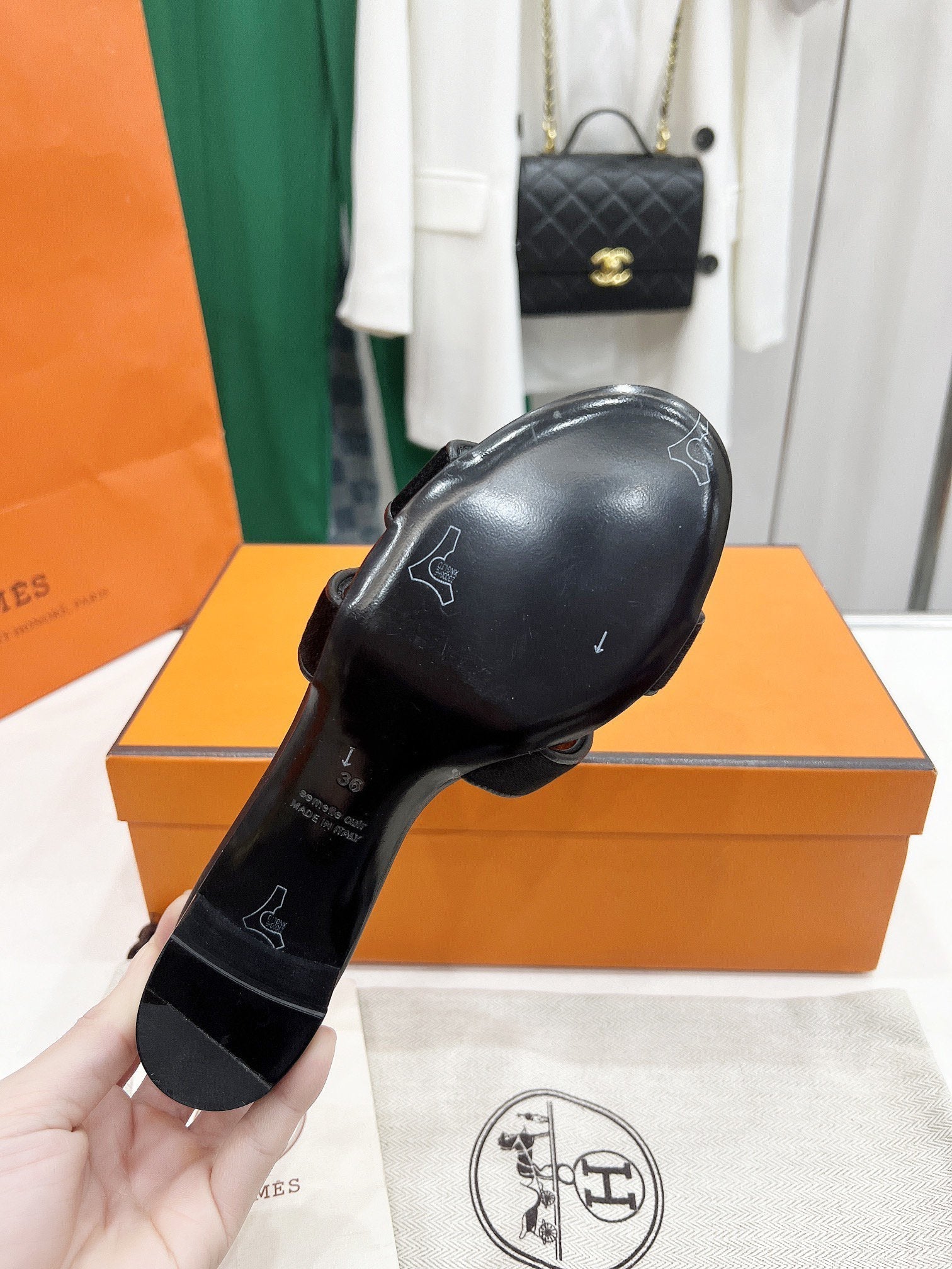 - Material: Sandal in velvet with iconic "H" cut-out.