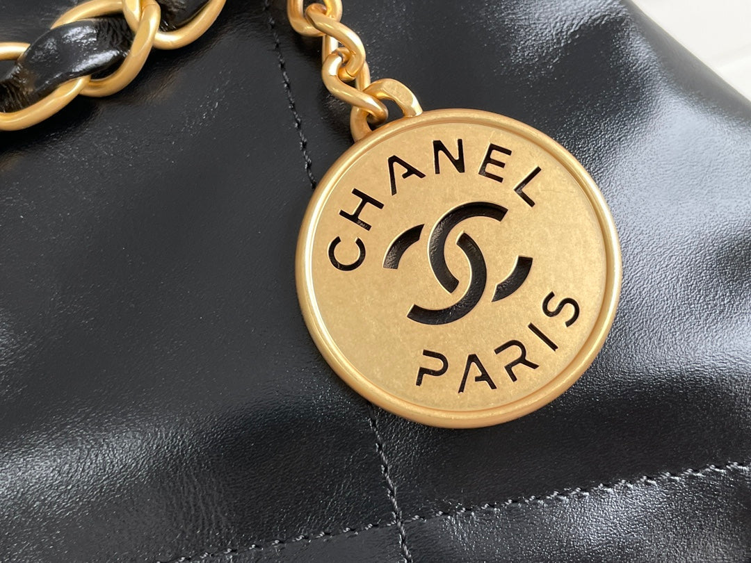 24K CC Hobo 22 Bag Black Lambskin Gold Hardware