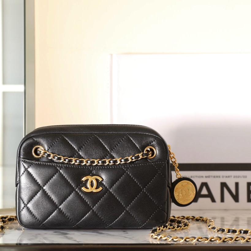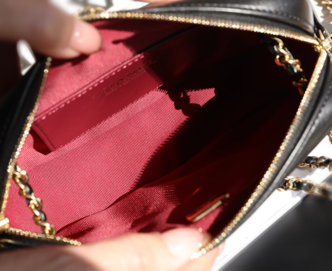 24K Mini Camera Case 18cm Black Lambskin