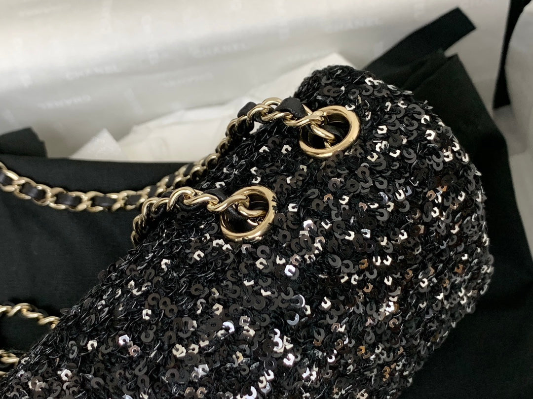 25C Flap Bag 20cm Black Polka Dot Silver Sequin Calfskin