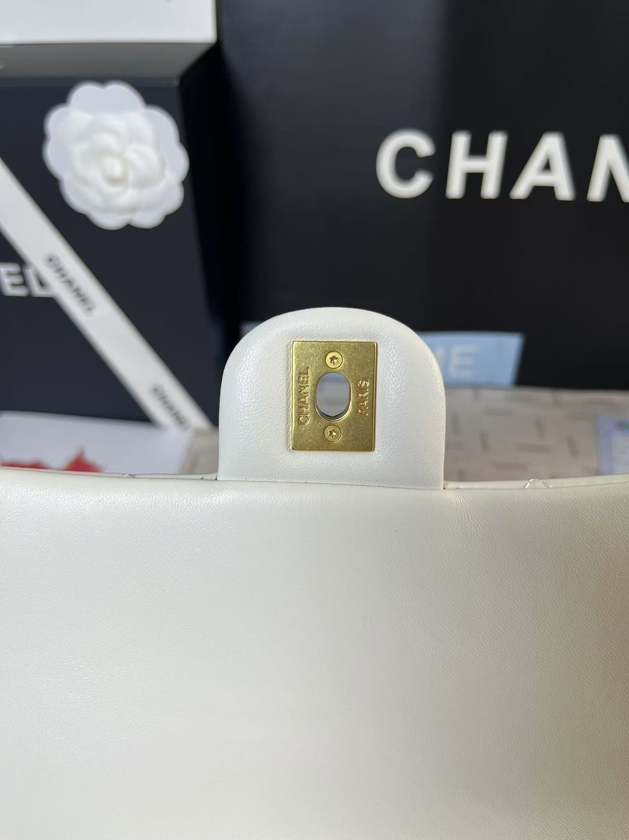 25C Mini Flap 24cm White Lambskin Gold Heart Hardware