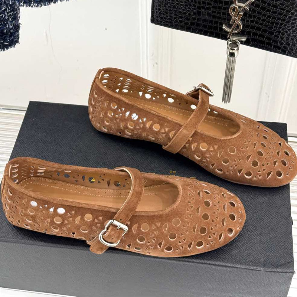 Alaia Women's Ballet Flat Brown Beige Suede 293222