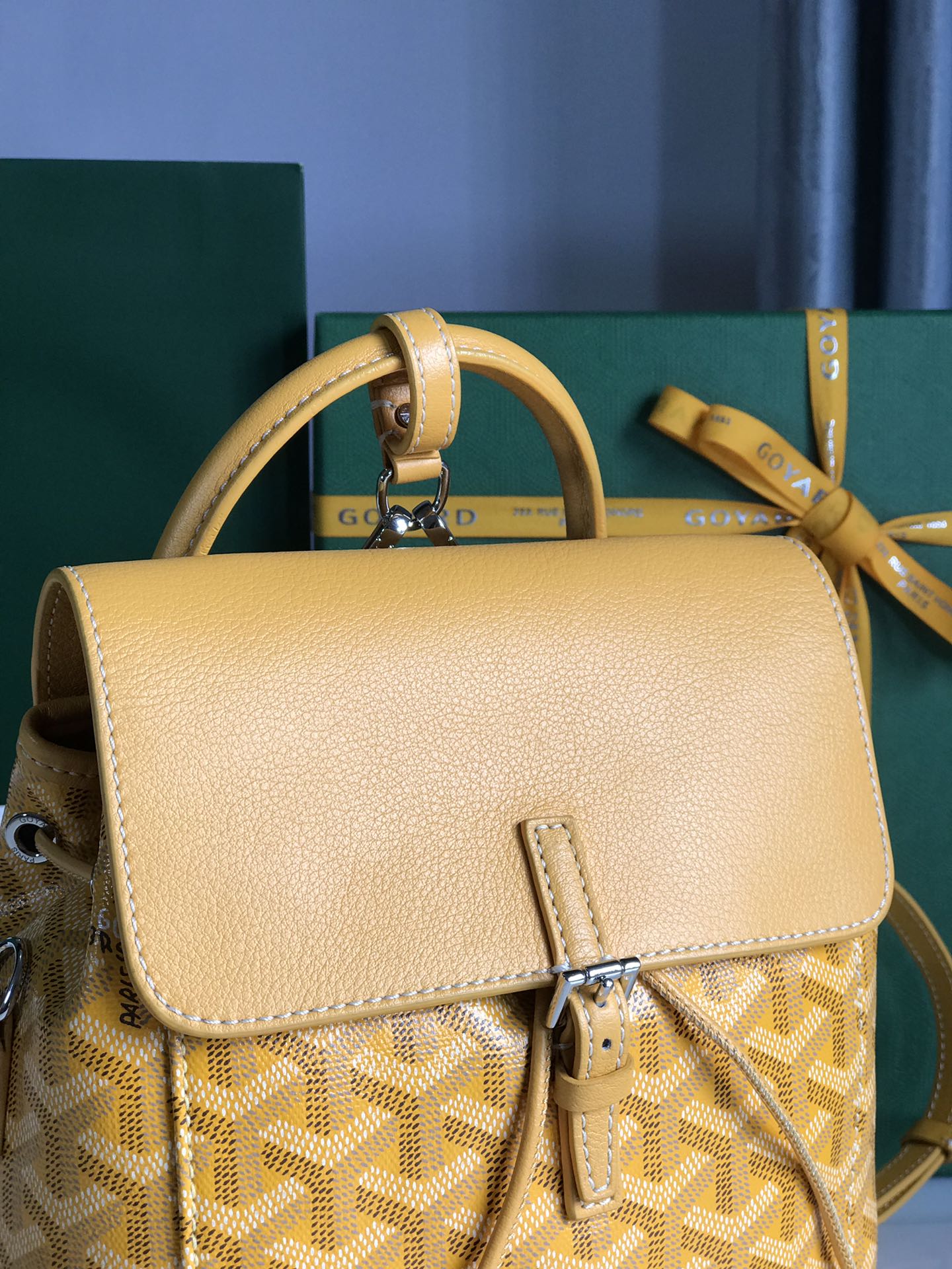 ALPIN MINI BACKPACK 21 IN YELLOW LAMBSKIN AND GOYARDINE CANVAS