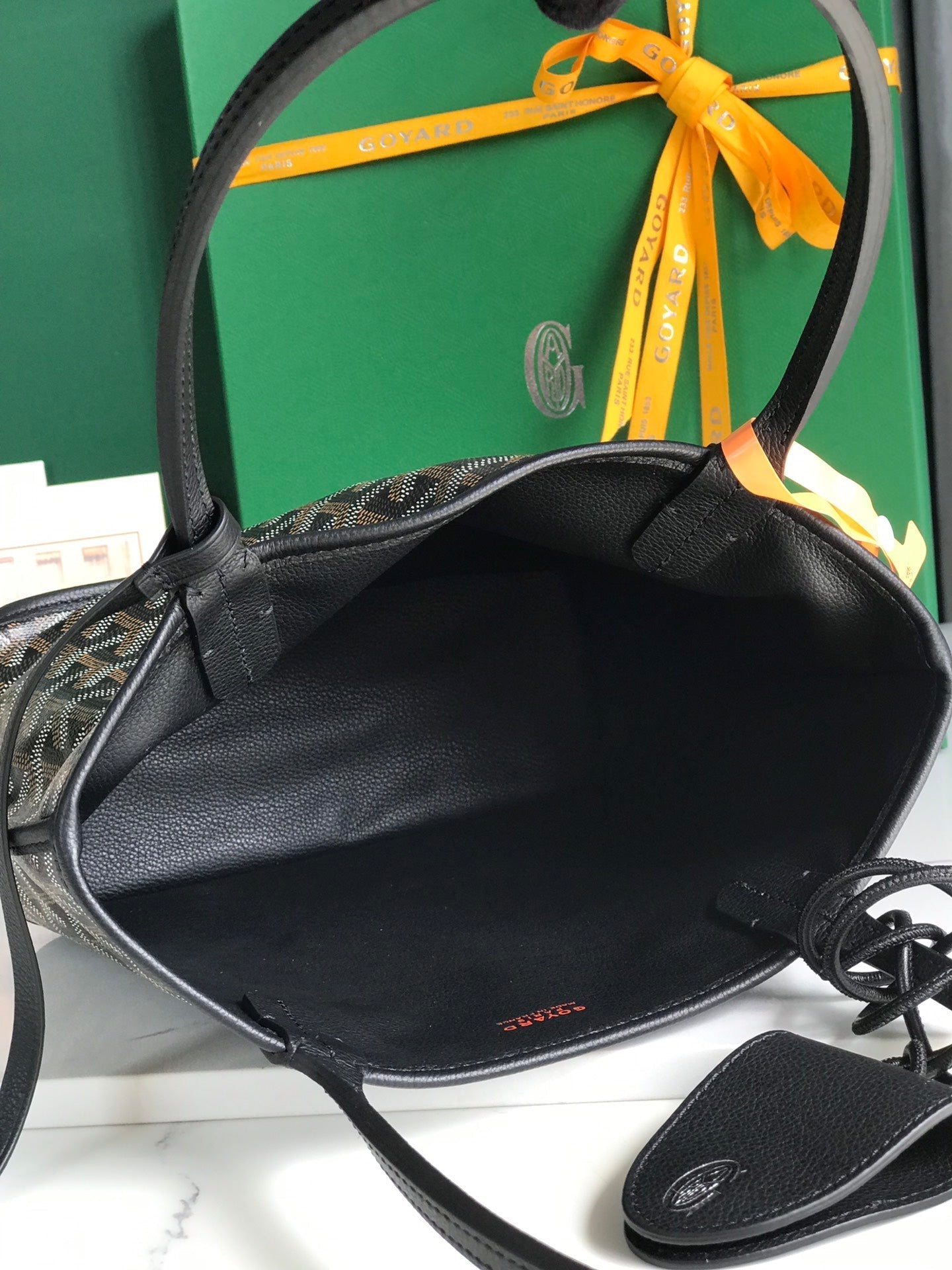ANJOU MINI BAG 20 IN BLACK CALFSKIN AND GOYARDINE CANVAS