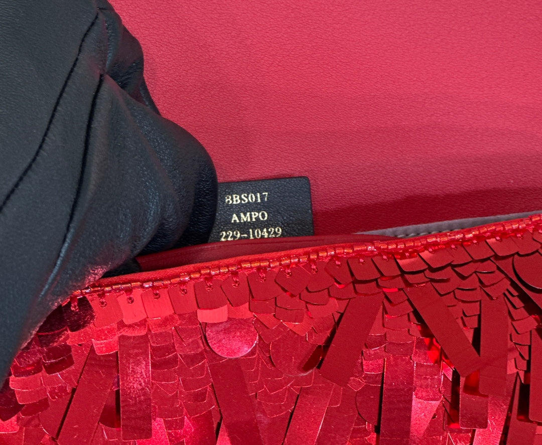 BAGUETTE MINI 19 IN RED SEQUINS GOLD HARDWARE