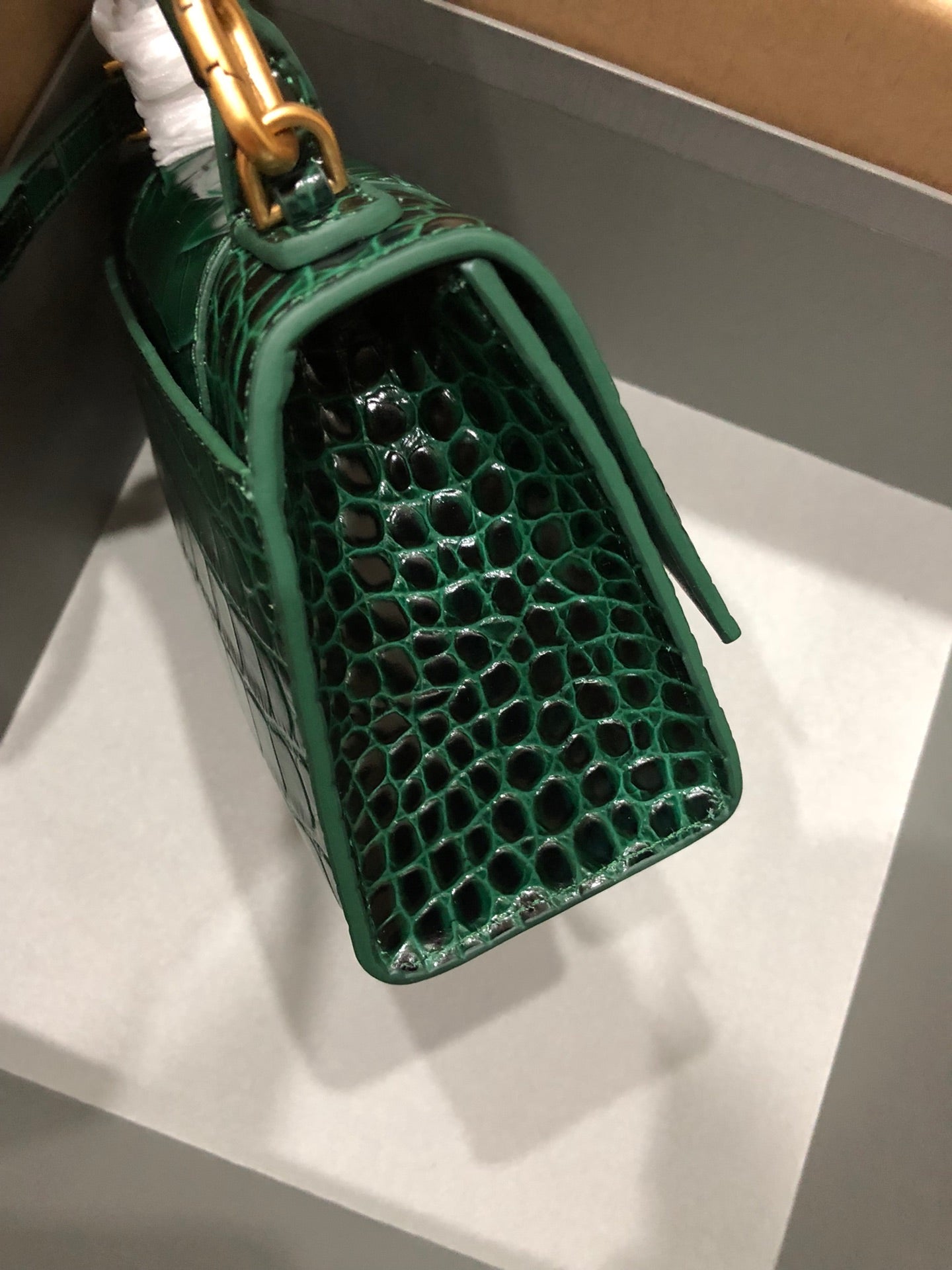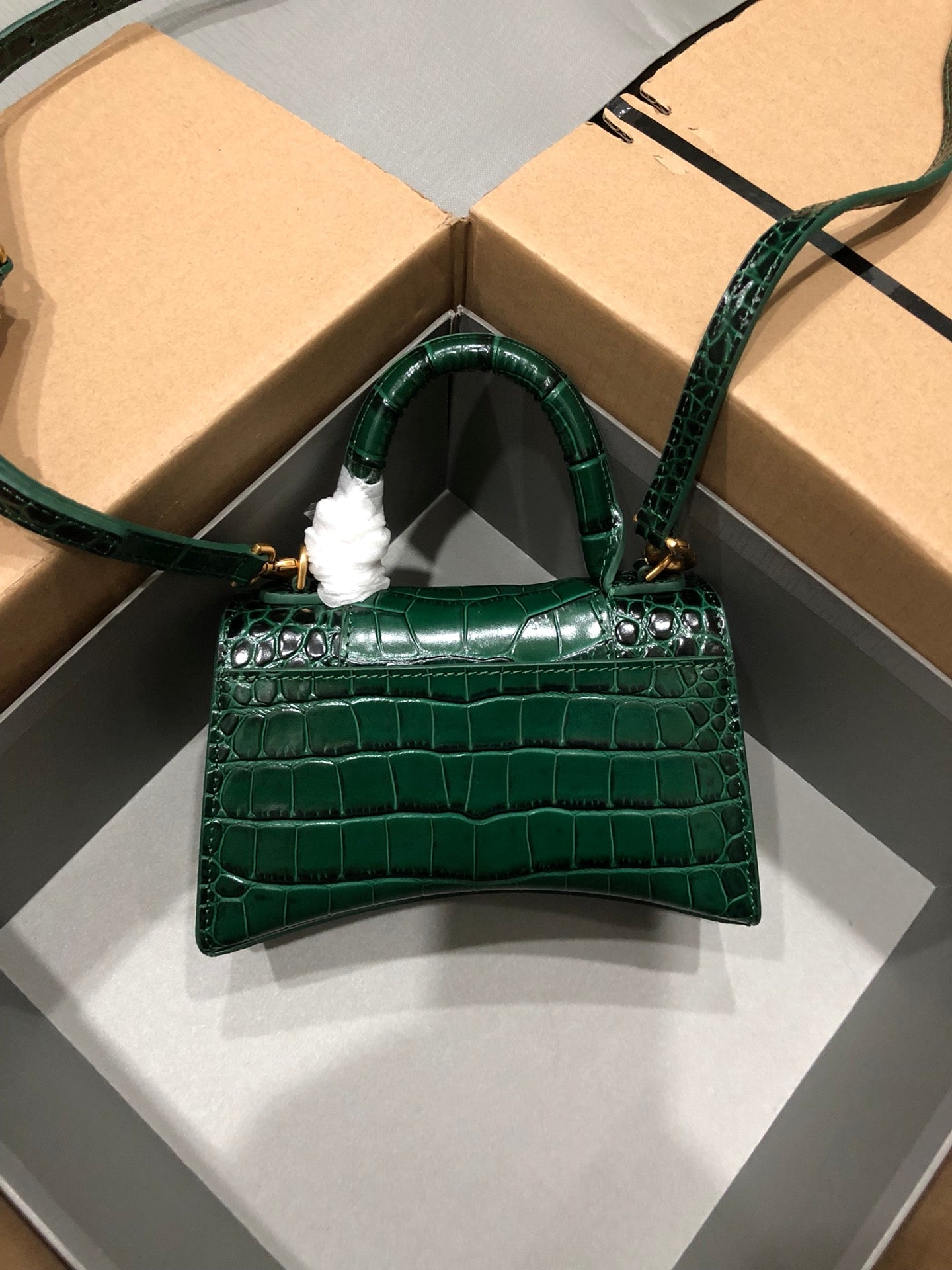 Balenciaga Hourglass bag dark green crocodile skin