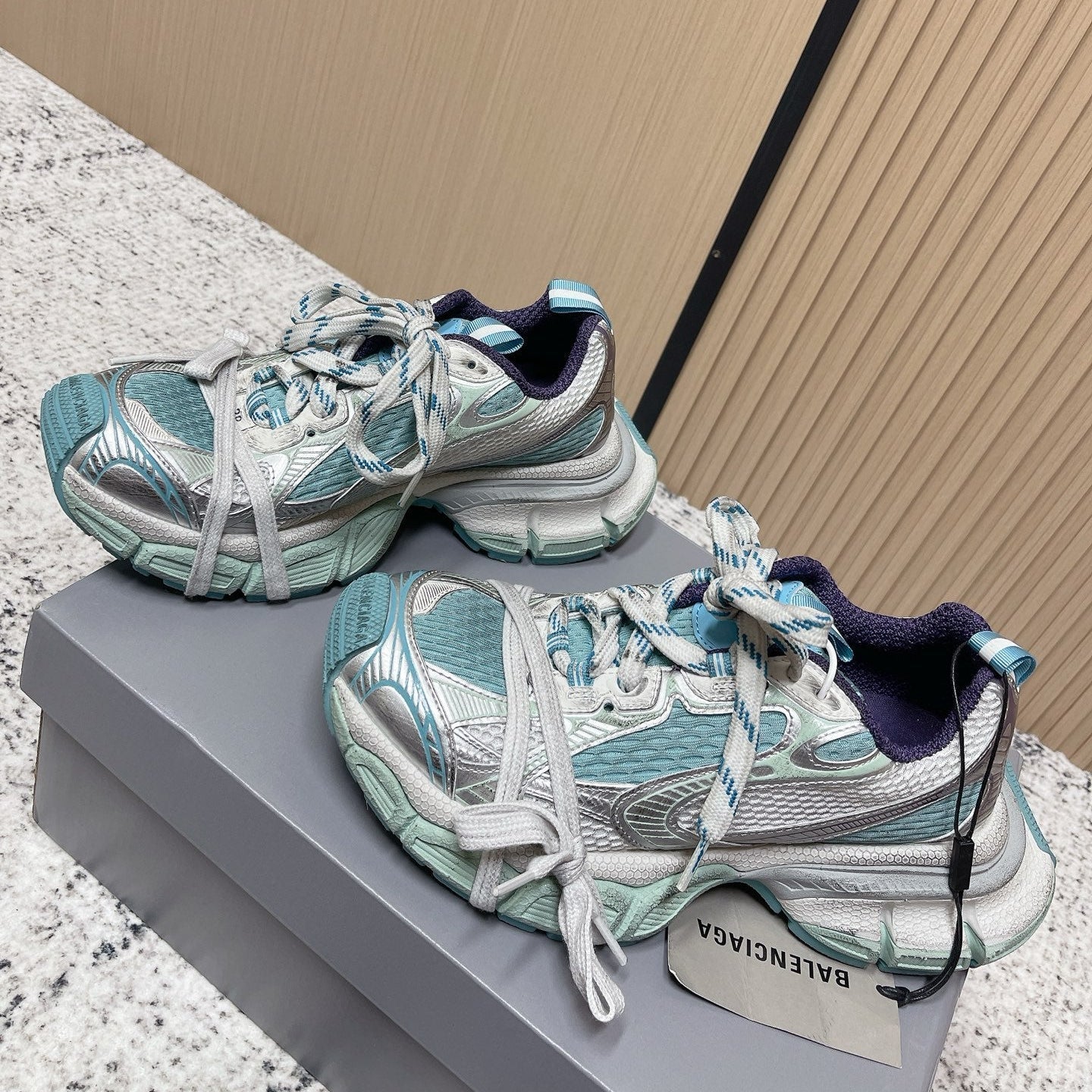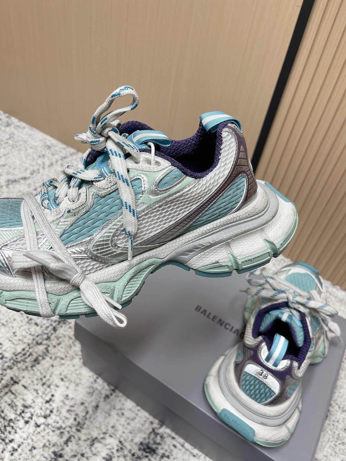 Balenciaga Sneaker Mesh Lace-up Light Blue Fabric 534179