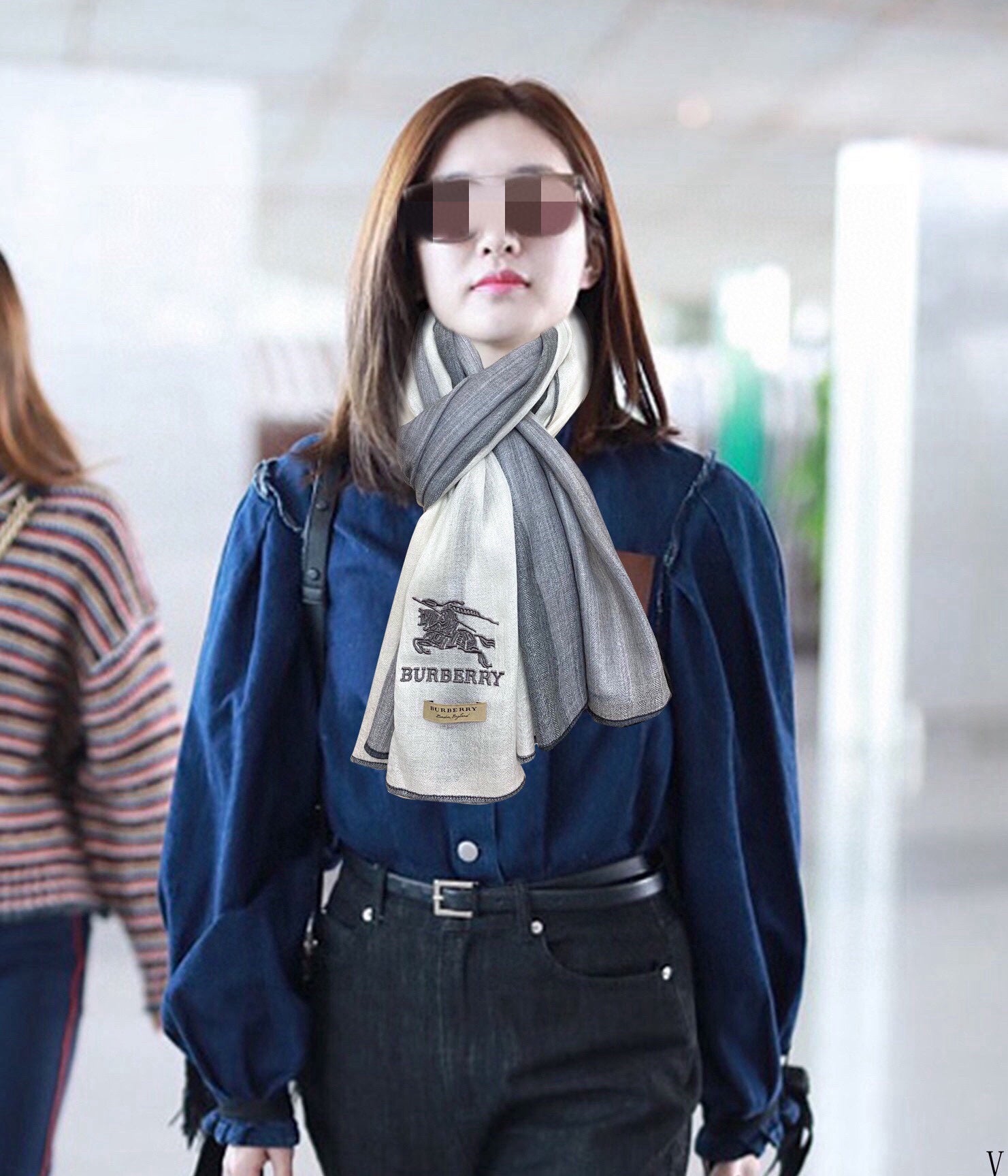 BBR Double-Sided Scarf 200CM Gray White Cashmere 292975