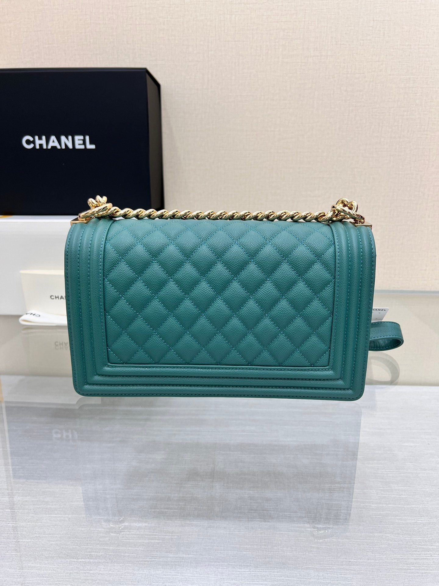 BOY BAG MEDIUM 25 EVERGREEN CAVIAR GOLD HARDWARE