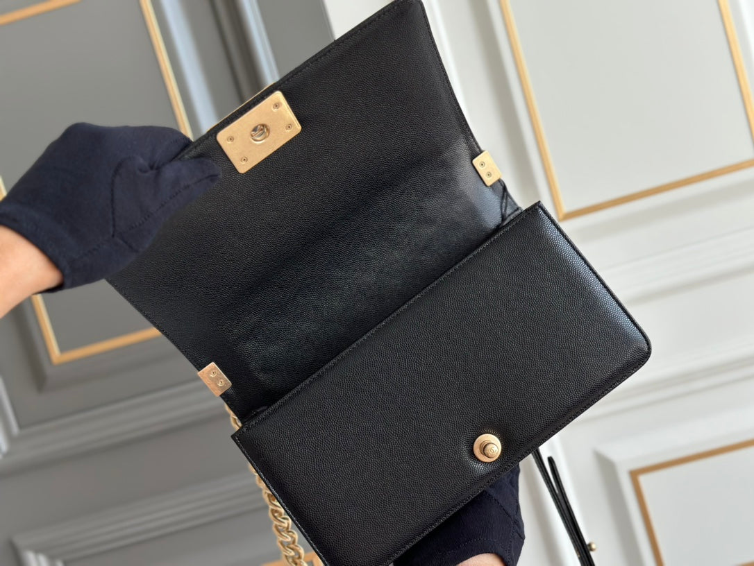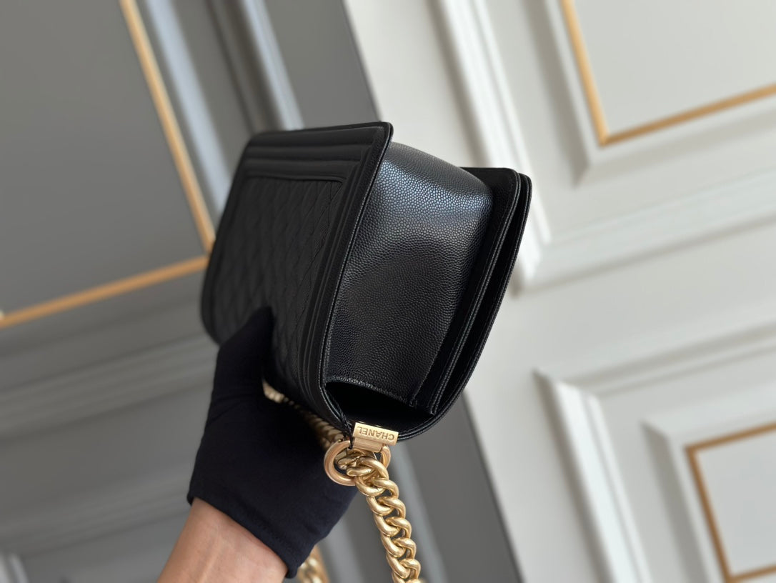 boy medium 25 black quilted caviar ghw