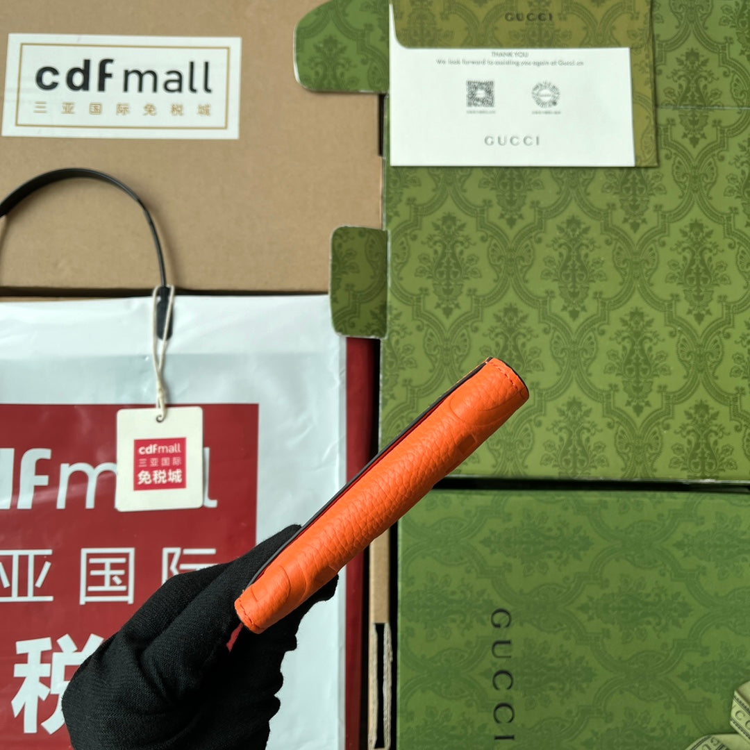 CARD HOLDER 12 IN ORANGE EMBOSSED CALFSKIN