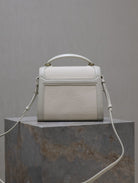 CASSANDRA MINI TOP HANDLE BAG 20 IN WHITE CANVAS AND LEATHER TRIM